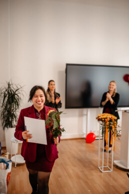 Über 90 % der Absolventinnen und Absolventen haben mit einer Auszeichnung abgeschlossen und somit innerhalb ihrer Ausbildung sehr gute Leistungen erbracht. Mit dem besten Ergebnis durfte sich Vivien Stoyanov feiern lassen. Sie erreichte einen Durchschnitt von 1,1. Wir sind begeistert!