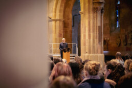 Wie also dem begegnen? Wie das Sein stärken gegen das Haben? Ich bin Lehrer. Aus Überzeugung kann ich keine andere, werde ich also immer diese Antwort geben: Bildung stärkt unser Sein. Bildung befähigt uns zu sein. Zugegeben: Bildung befähigt uns auch, zu haben. Aber vor allem versetzt uns Bildung in die Lage, unsere Existenz nicht unkritisch allein auf das Haben auszurichten, sondern das Sein als den Kern unserer Existenz zu erkennen und anzunehmen. Die Kolping Bildung Heilbronn-Franken steht für eine solche Bildung, die das Sein in den Fokus rückt: Im Mittelpunkt steht der Mensch. So lautet der Kern unseres Wertekatalogs. Flankiert wird er von Werten wie Verantwortung, Zuverlässigkeit, Toleranz, Unterstützung, Wertschätzung, um nur einige zu nennen. Keiner dieser Werte – Keiner – zielt auf das Haben. Keiner dieser Werte zielt auf ein Denken, dass zu strukturellen Ungleichheiten führt. Im Gegenteil: Aus Überzeugung rücken wir an allen unseren Schulen das Sein in den Mittelpunkt unserer Bildung, rücken wir Menschen in den Mittelpunkt – und die Beziehungen, die wir zu diesen Menschen aufbauen und führen. Toleranz, Unterstützung, Wertschätzung sind per se Begriffe, die über den Tellerrand des eigenen Ichs hinaus auf andere Menschen gerichtet sind, die auf Bindung, auf Verbindung zielen. Toleranz, Unterstützung, Wertschätzung bringe ich anderen Menschen entgegen. Ein Leben, das das Haben in den Mittelpunkt rückt, zielt nur und ausschließlich auf sich selbst. Ein Leben, das das Sein in den Mittelpunkt rückt, zielt auf ein Miteinander, ein Füreinander. Ein gelingendes Leben lebt das Sein – nicht das Haben.